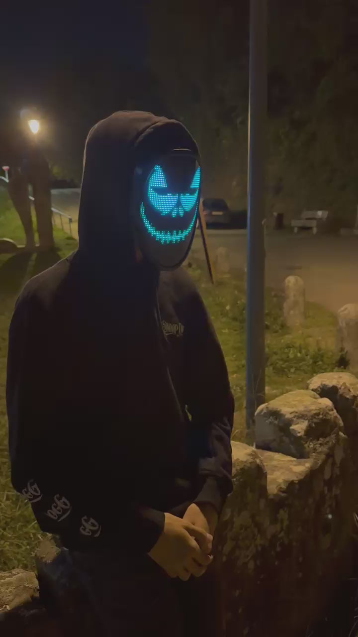 Nuestras máscaras LED están diseñadas con una pantalla inteligente que te permite cambiar el diseño, color o animación desde tu teléfono móvil mediante una app gratuita.